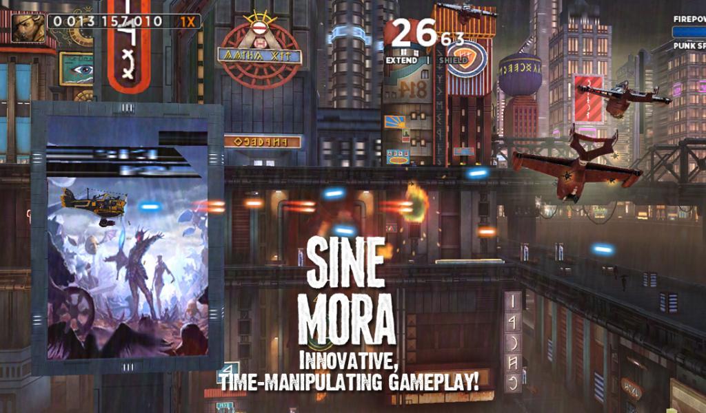 Sine Mora is a horizontal shoot'em up offers a unique take on challenge, where time is the ultimate factor. Mixing classic shooter sensibilities with a contemporary presentation, Sine Mora is a great shoot'em up that offers a story mode that weaves a story over-the-top and an arcade mode that offers deep, satisfying gameplay to challenge fans of the genre. With many ways to manipulate time, Sine Mora features over 50 combinations of weapons to complete each beautiful stage thus adapts to the abilities of the players with problems of scale. Soundtrack composed by Akira Yamaoka and Mahiro Maeda boss designs.